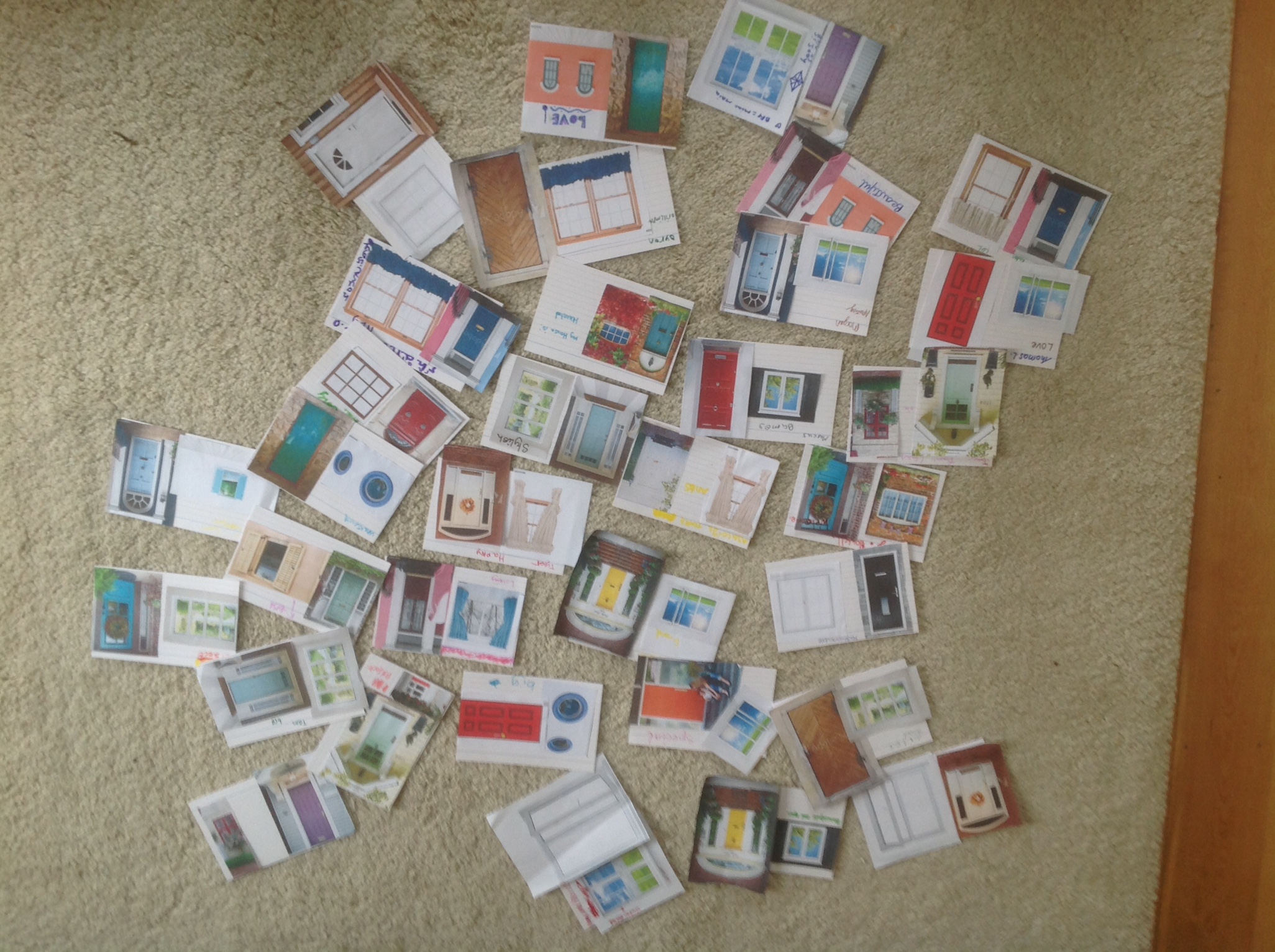 In workshops led by poet Dave Wood and writer Chrissie Hall the children produced six collaborative six lined poems relating to house and home, and 35 cards on which they’d each chosen two architectural features for their ‘house’, fixed them on cards and wrote one word to describe their home.